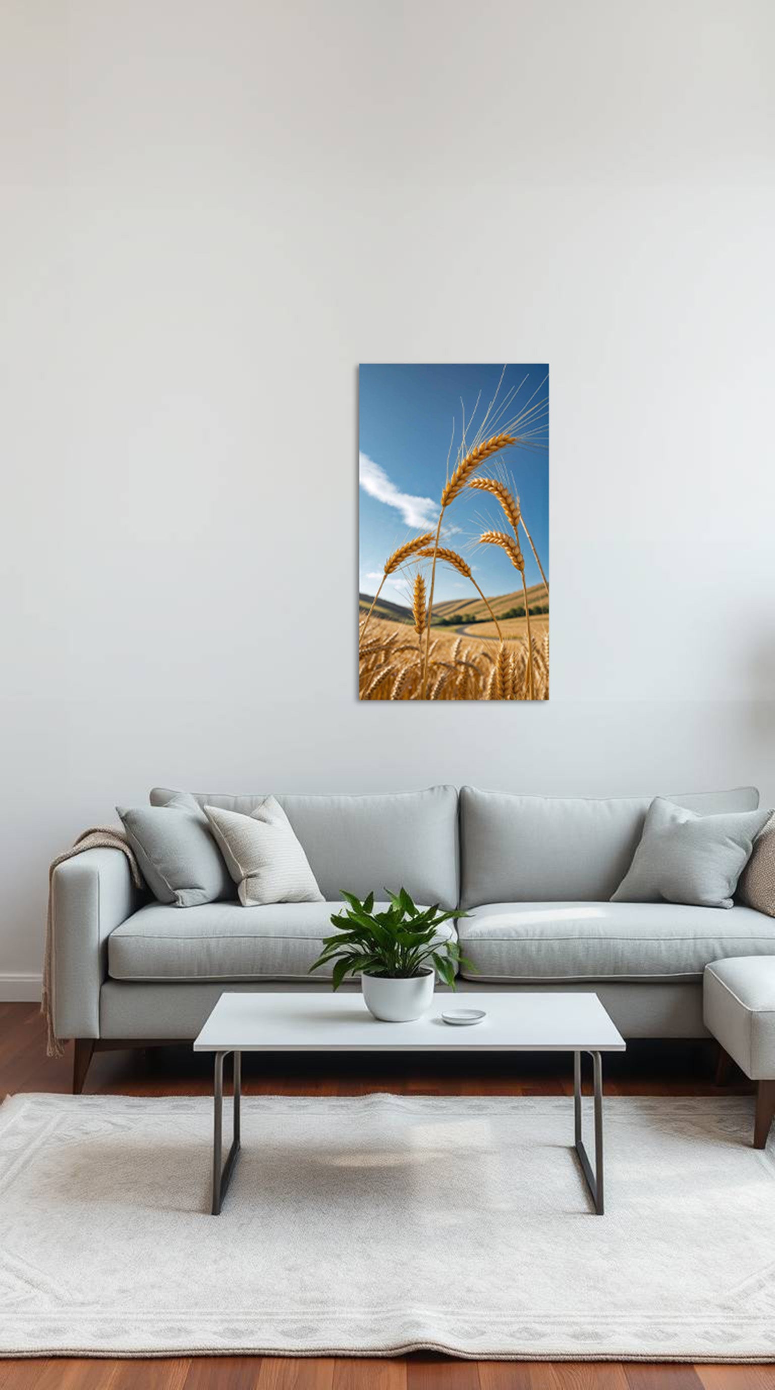 Bring warmth and natural beauty into your home with this serene metal poster. Featuring golden wheat swaying under a clear blue sky, it adds a touch of countryside calm to any space. Printed on premium aluminum for vivid colors and a sleek, lasting finish.