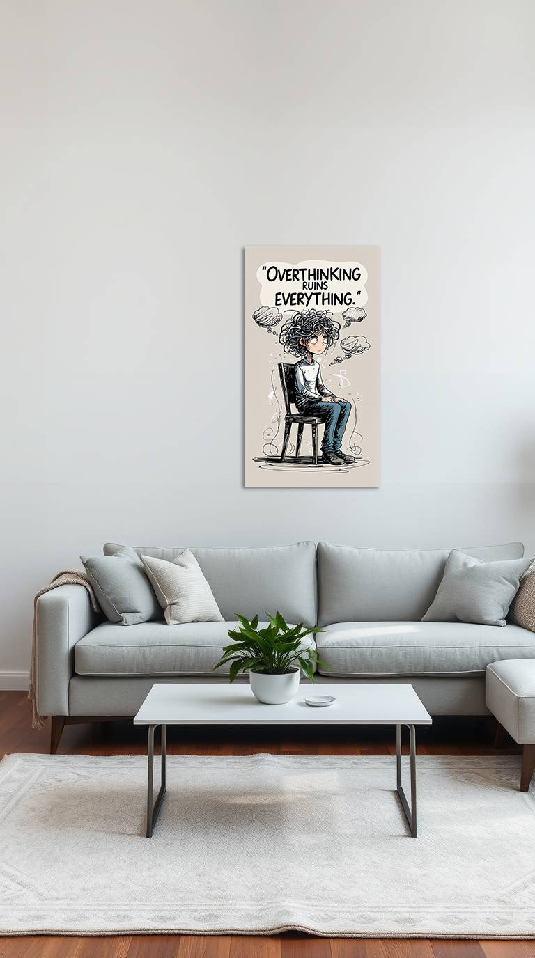 This bold aluminum poster captures the chaos of a tangled mind with the striking quote: “Overthinking ruins everything.” Featuring a scribble-haired figure lost in thought, it’s a raw and relatable piece for anyone who knows the struggle of mental overload. A perfect reminder to let go and breathe, ideal for workspaces, bedrooms, or therapy spaces. Durable, modern, and deeply expressive.