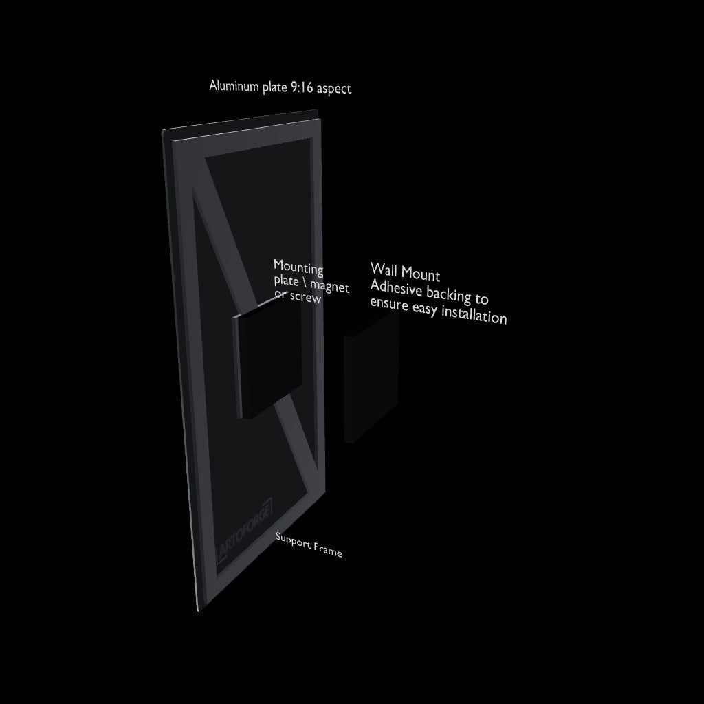 Every poster comes with our signature magnetic mounting – no nails, no drilling, no damage to your walls. A discreet magnetic plate holds your artwork securely in place while allowing you to swap designs in seconds.