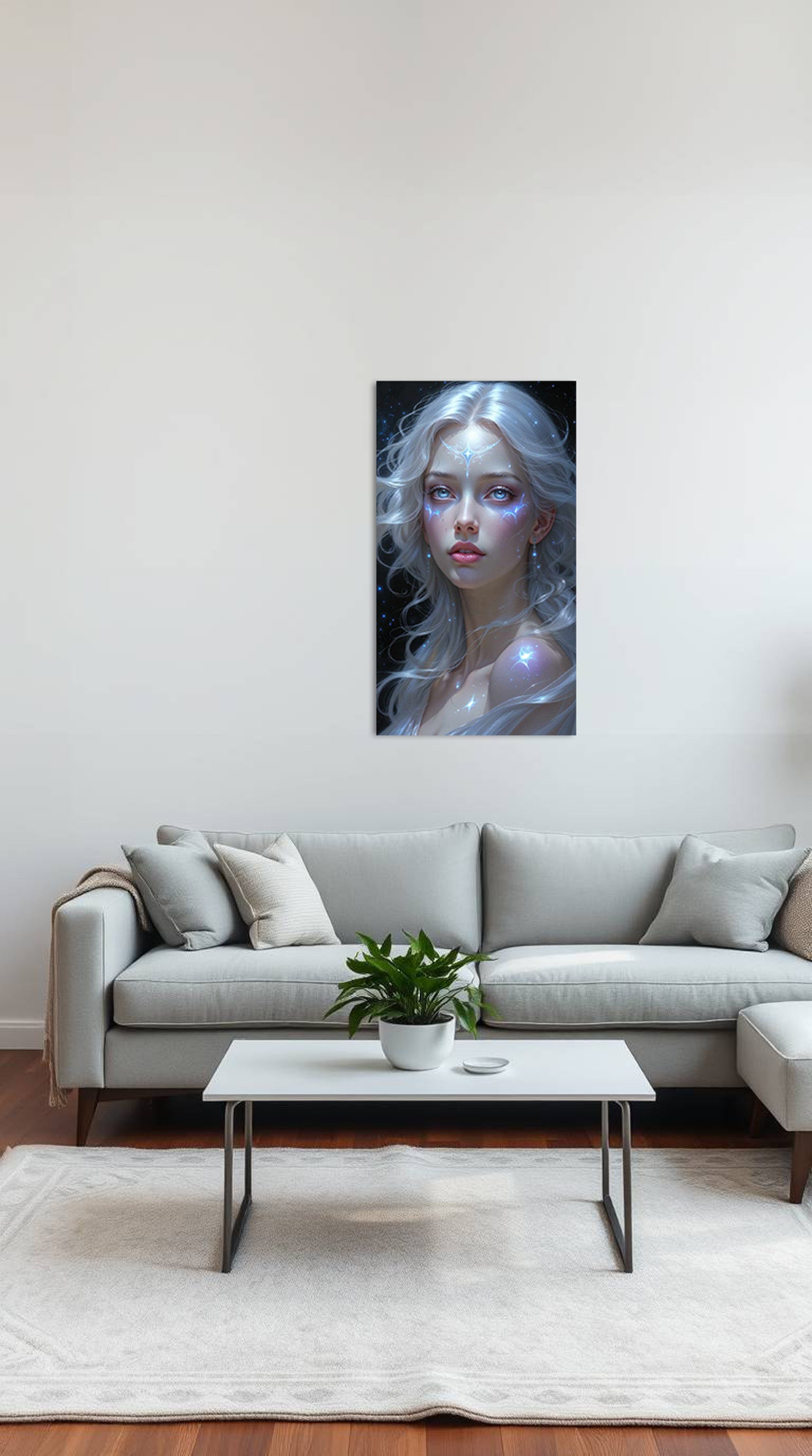 Illuminate your space with ethereal beauty. This stunning metal poster features a radiant elf woman adorned with glowing starlight markings, capturing the magic of fantasy realms. Printed on premium aluminum for vivid colors and a luxurious, lasting finish that enchants every room.